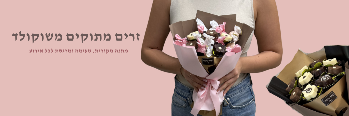 מחפשים מתנה מקורית וטעימה? הזרים המתוקים שלנו הם הפתרון המושלם! מגוון רחב של שוקולדים מעוצבים בזרים צבעוניים, טעימים ומרשימים.