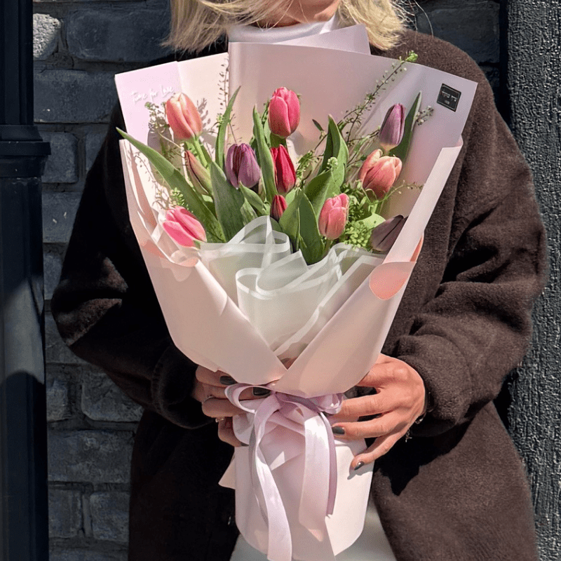 זר טוליפים צבעוניים לפי מלאי הצבעים הקיים
