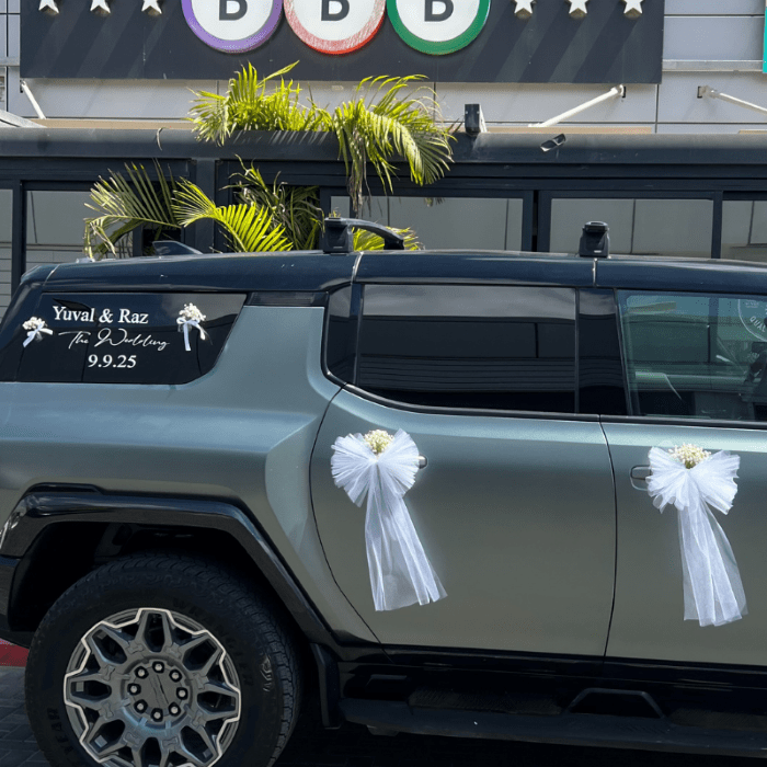 פרחי שוקולד מומחים בקישוטי רכב חתן – כלה.