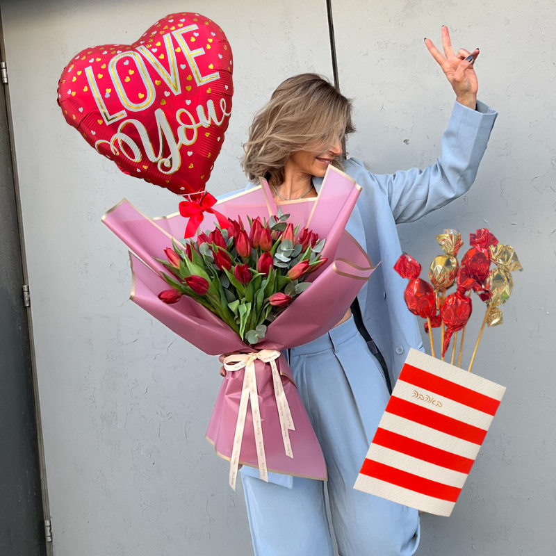 רומנטי עם בלון שוקולד וכרטיס ברכה
