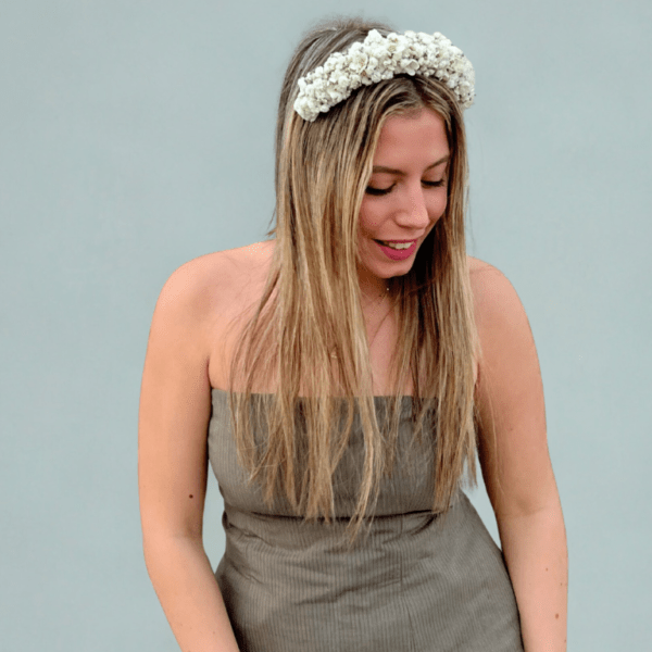 הינו זר לראש בגווני לבן שבילוב של גיפסנית וטווידה.